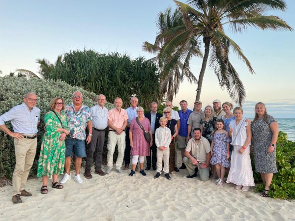 Allt är inte militärhistoria. Vårt glada gäng på väg till ett polynesiskt beachparty!